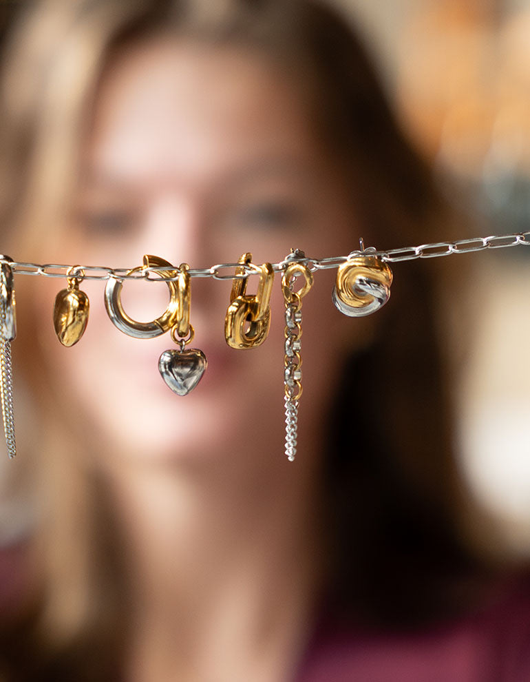 Kollektion kombinieren lassen – ob du mehrere Ohrringe in einem Ohr trägst oder sie mit