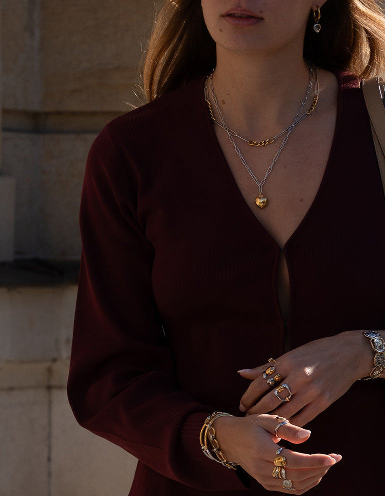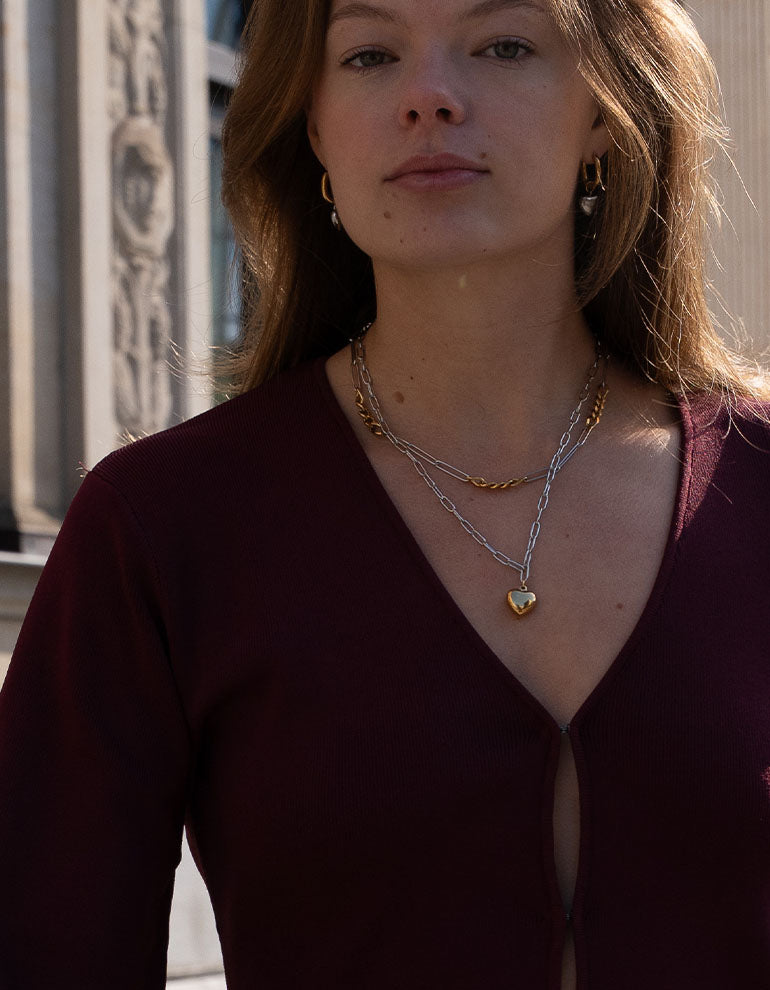 Gefertigt aus hochwertigem Edelstahl und 18K vergoldet, bleibt die Fusion Chain Necklace wasserfest, robust und farbstabil – ready für deinen Alltag und deine Night-Out Looks.