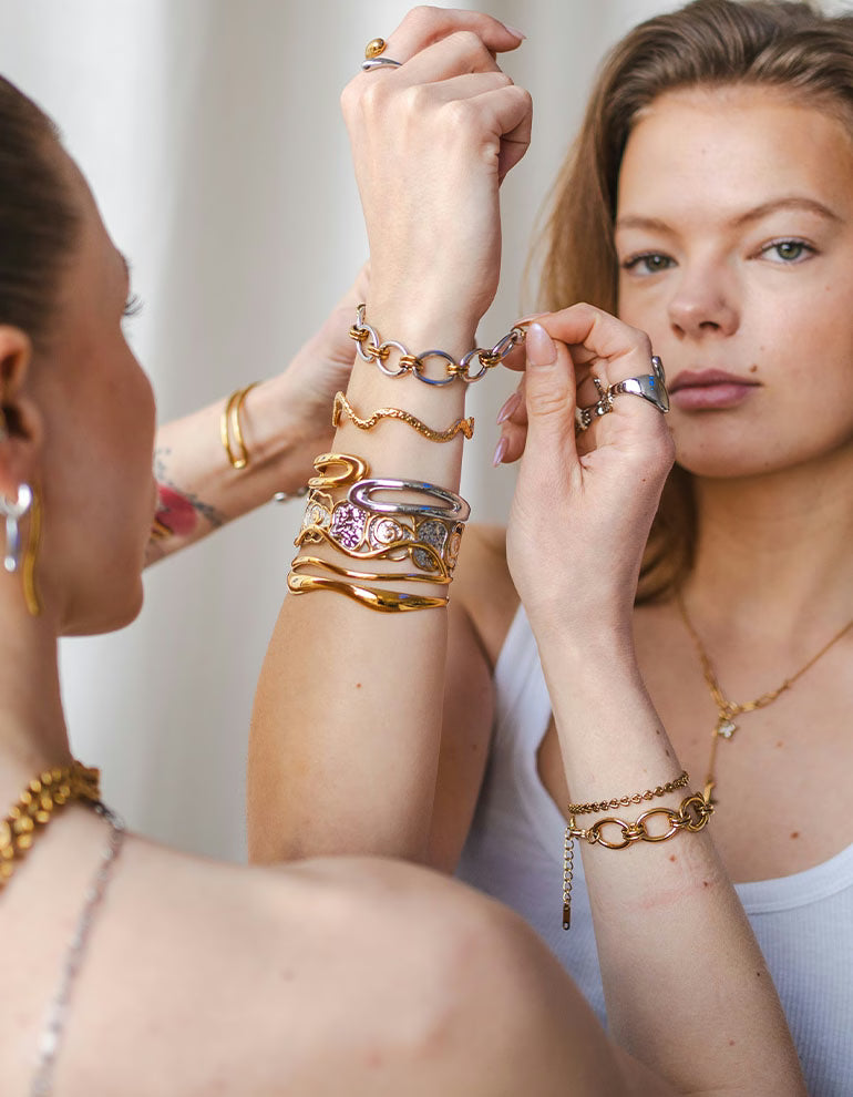 Gefertigt aus Edelstahl ist er robust, wasserresistent und ready für alles – von Alltagslooks bis Abendvibes. Easy anzulegen, schwer zu übersehen.