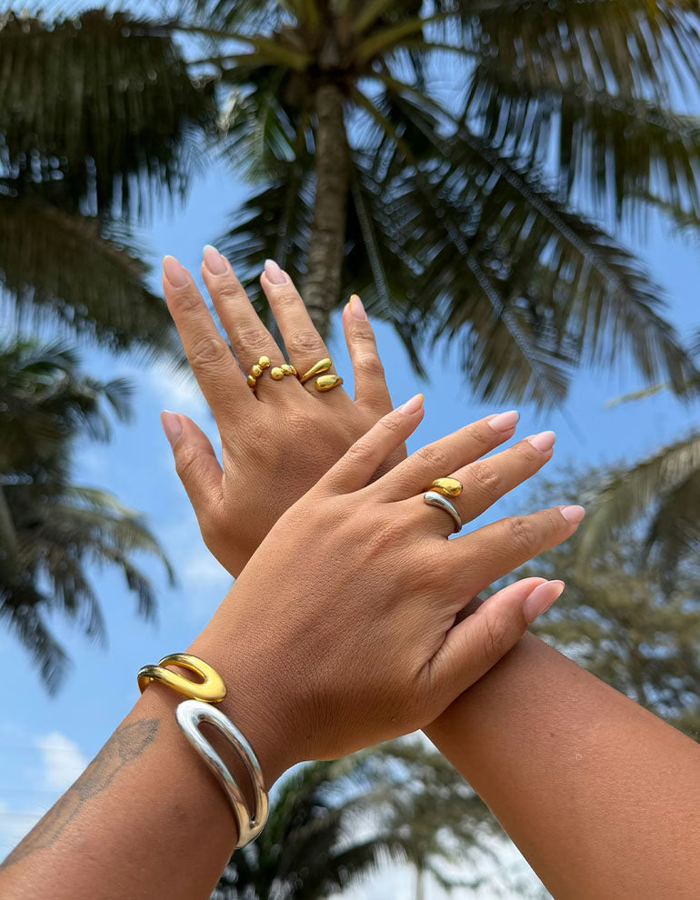 Das Curved Bangle überzeugt mit einer geschwungenen, offenen Form, die gleichzeitig weich und kraftvoll wirkt. Das organische Design legt sich wie selbstverständlich ums Handgelenk und zieht Blicke, ohne laut zu sein.