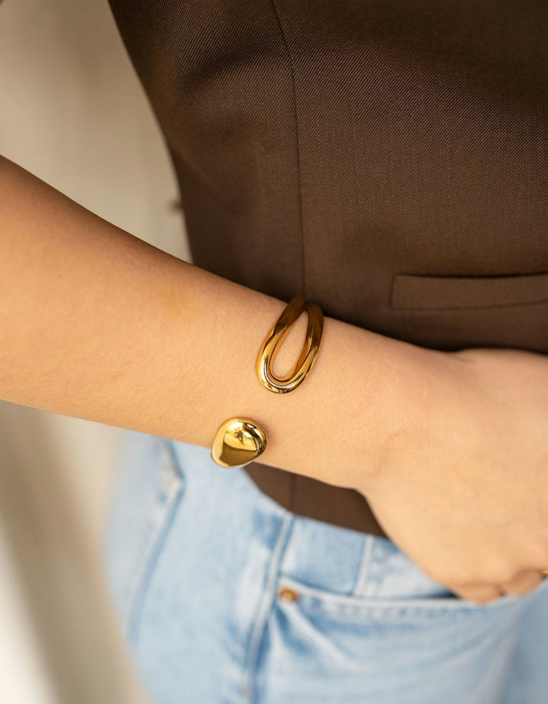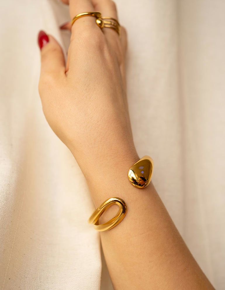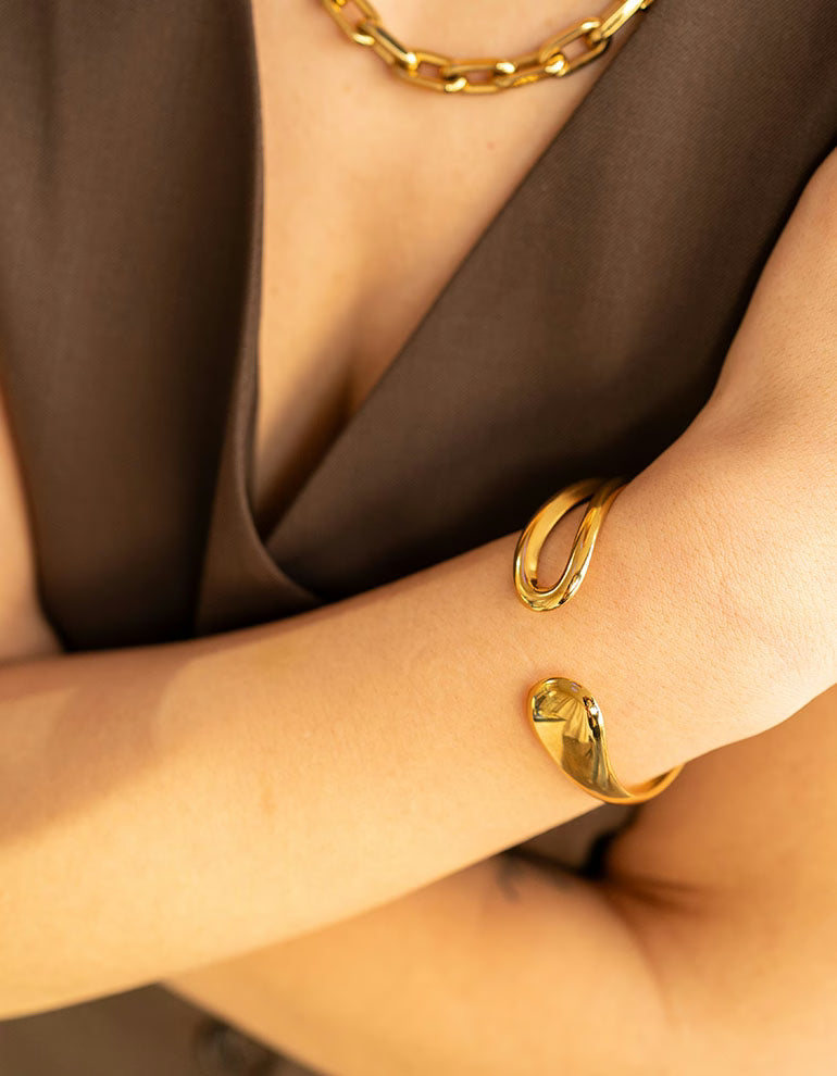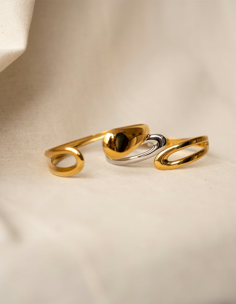 Two tones, one statement: The Bicolor Contrast Bangle combines cool silver with warm gold in a clean, minimalist design. Crafted from water-resistant stainless steel and plated with 18K gold, this bracelet is the perfect everyday companion – whether worn alone or stacked with your favorite pieces.